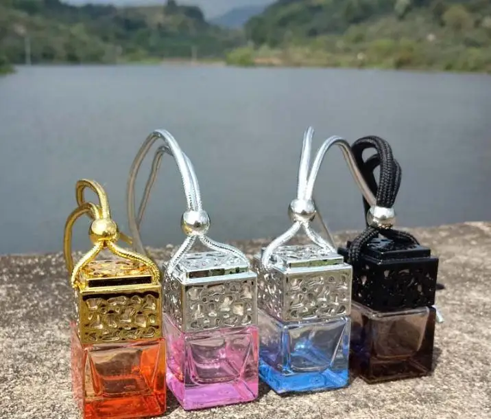 Special Offer Kleurrijke Kubus Auto Parfumflesje Opknoping Luchtverfrisser Voor Essentiële Oliën Diffuser Fragrance Lege Glazen Fles Hanger SN1624 Discount [NEW!!] Today!