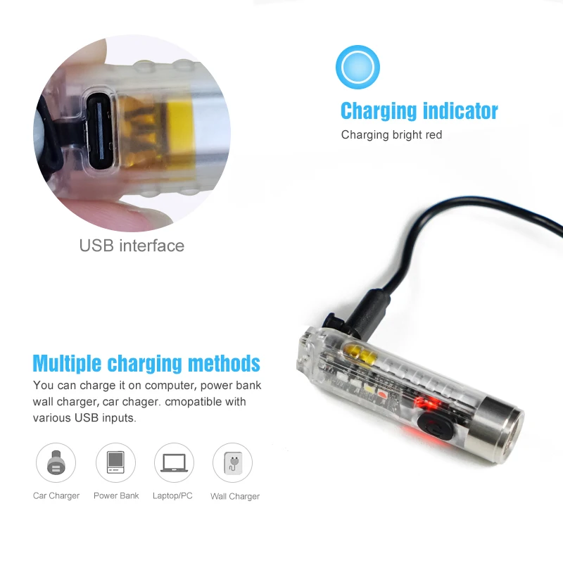Product Name: Sleutelhanger Zaklamp 10 Modes Waterdichte Sidelight Mini Usb Oplaadbare Led Licht Met Signaal Licht Voor Outdoor Running Camping