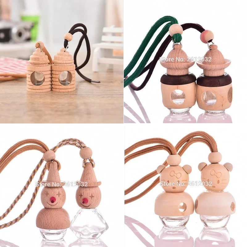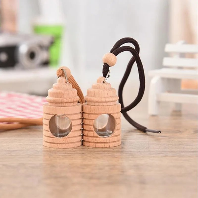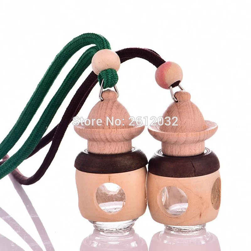 Product Name: 100Pcs Mooie Auto Luchtverfrisser Parfum Lege Hout Opknoping Glazen Fles Decoratie Voor Essentiële Oliën Crystal Auto Ornament
