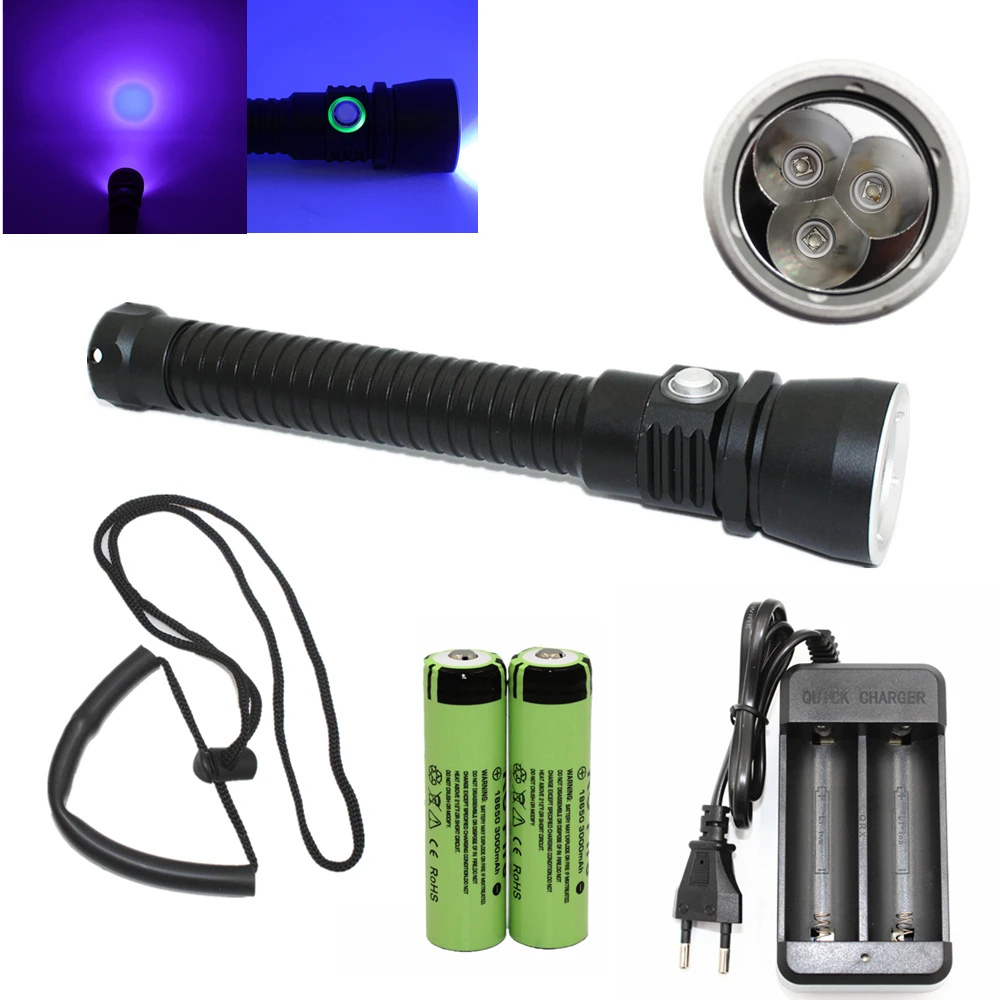 Special Offer Uv Zaklamp 3x Ultraviolet Licht Duiken Licht Onderwater Uv Zaklamp + 18650 Batterij + Lader Voor Vinden Scorpion Cash Detectie Discount [NEW!!] Today!