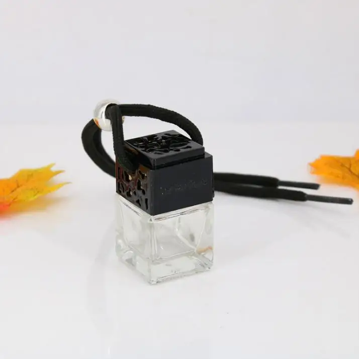 Product Name: Cube Hollow Car Perfume Bottle Ornament Hanging Air Freshener For Essential Oils Diffuser Empty Glass Bottle Pendant SN921