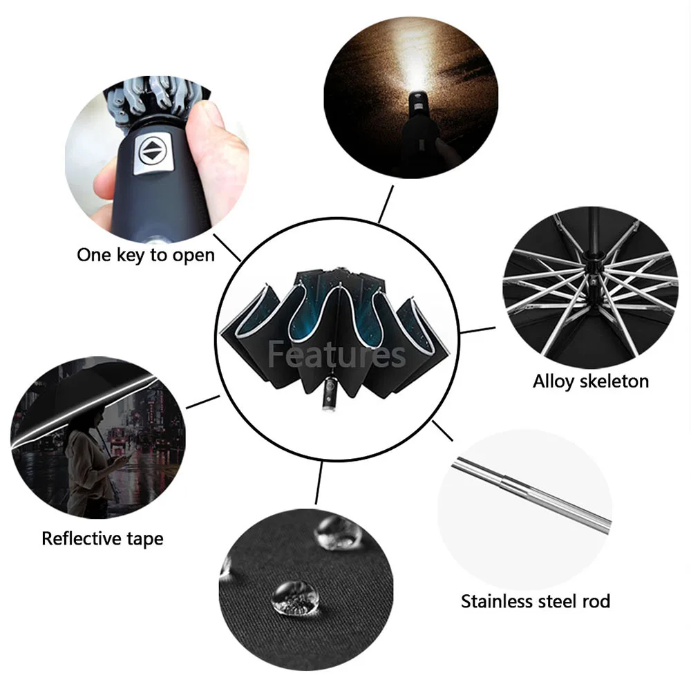 Product Name: Youpin Zuodu Reverse Automatische Paraplu Met Zaklamp Paraplu Mannelijke Creative Sunny Regen Winddicht Waterdicht Uv Paraplu Mannen