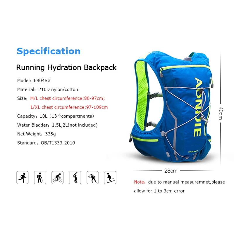 Product Name: Aonijie E904S 10L Drinkrugzak Rugzak Rugzak Tas Harnas Vest Waterzak Wandelen Camping Running Marathon Race Sport