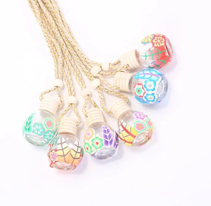 Product Name: Auto Parfum Fles Diffusers Lege Gedrukt Bloem Essentiële Olie Diffuser Ornamenten Luchtverfrisser Hanger Parfum Glazen Fles Sn